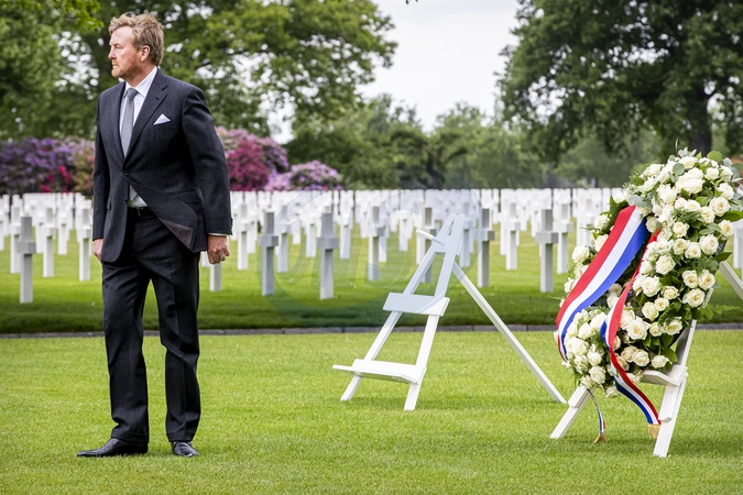 Krol Willem Alexander zlozyl kwiaty na amerykanskim cmentarzu Margraten