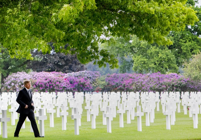 Krol Willem Alexander zlozyl kwiaty na amerykanskim cmentarzu Margraten