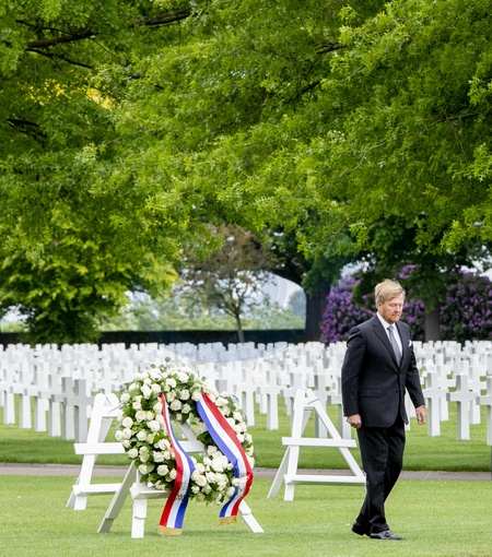 Krol Willem Alexander zlozyl kwiaty na amerykanskim cmentarzu Margraten