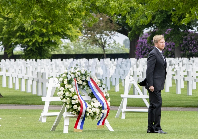 Krol Willem Alexander zlozyl kwiaty na amerykanskim cmentarzu Margraten