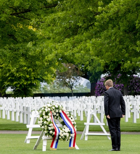 Krol Willem Alexander zlozyl kwiaty na amerykanskim cmentarzu Margraten