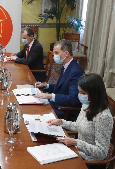 Krolowa Letizia i krol Filip na spotkaniu dot. koronawirusa