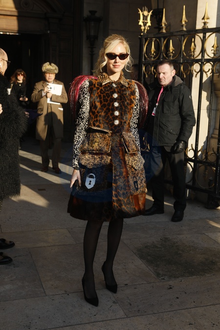 Goscie wracaja z pokazu Schiaparelli, Paryz