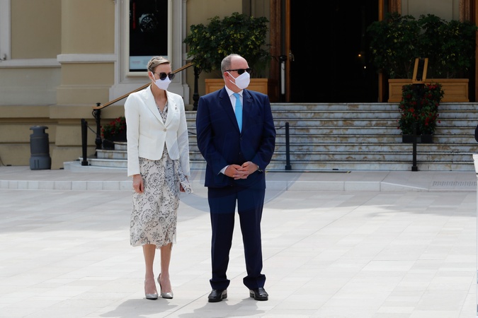Monakijska rodzina ksiazeca w maseczkach na inauguracji Place du Casino