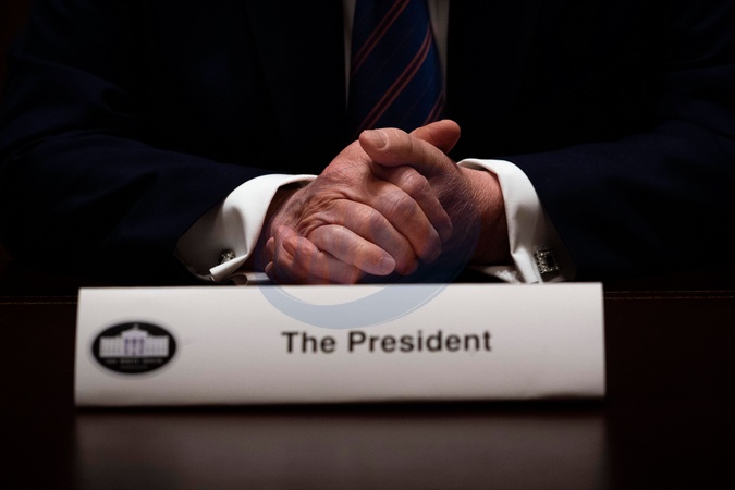 Zmeczony Donald Trump na spotkaniu w Bialym Domu