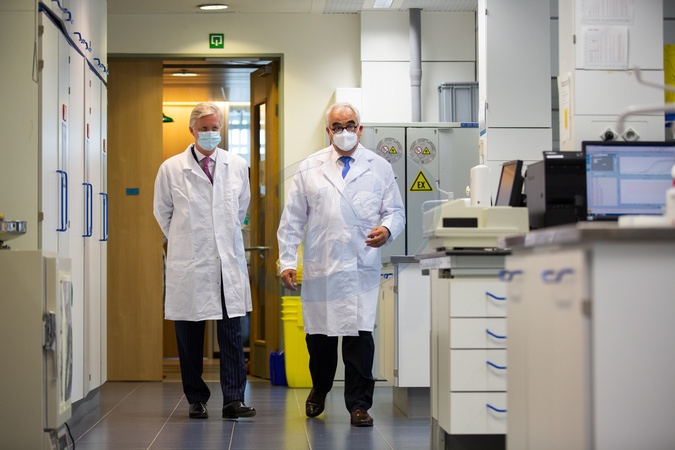 Krol Filip z Belgii odwiedzil laboratorium farmaceutyczne