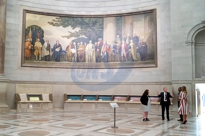 Melania Trump w sukience w paski w Muzeum Narodowym (18.06.2020)