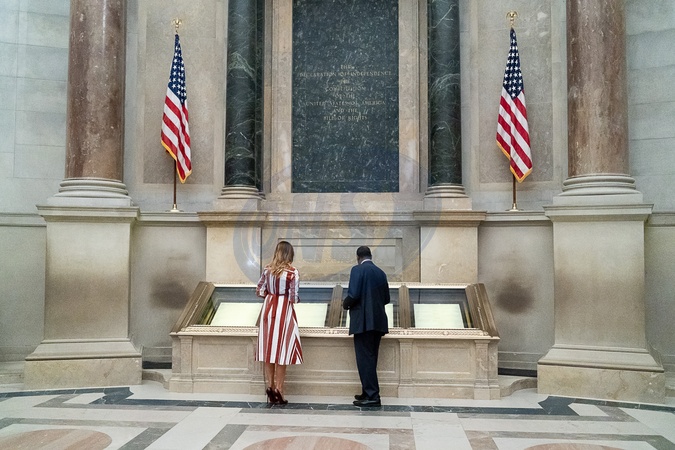 Melania Trump w sukience w paski w Muzeum Narodowym (18.06.2020)