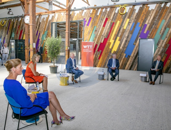 Krolowa Maxima w pomaranczowej sukience, podczas wizyty w Hamer Apeldoorn