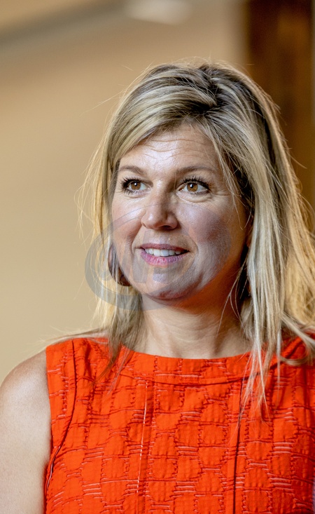 Krolowa Maxima w pomaranczowej sukience, podczas wizyty w Hamer Apeldoorn