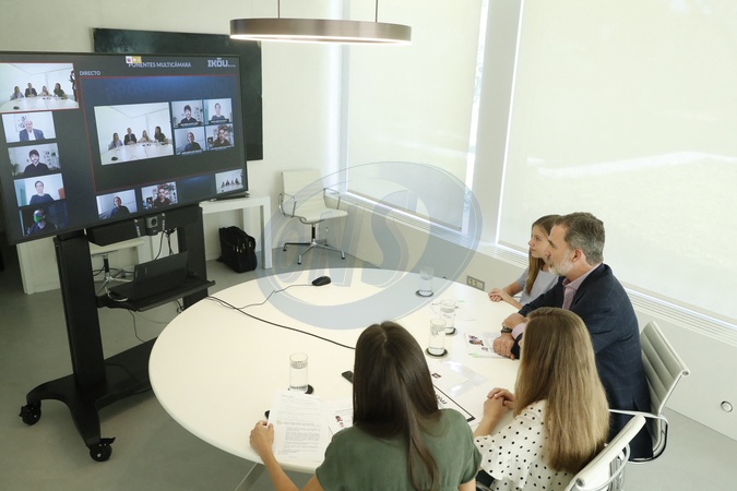 Hiszpanska rodzina krolewska podczas wideokonferencji ze zwyciezcami Princess of Girona Awards