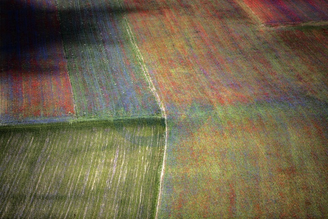 Ciekawostka - kolorowe pola kwitnacej soczewicy we Wloszech