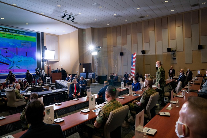 Donald Trump na spotkaniu dot. handlu narkotykami na Florydzie