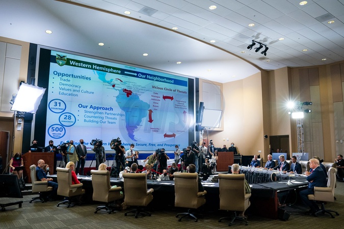 Donald Trump na spotkaniu dot. handlu narkotykami na Florydzie