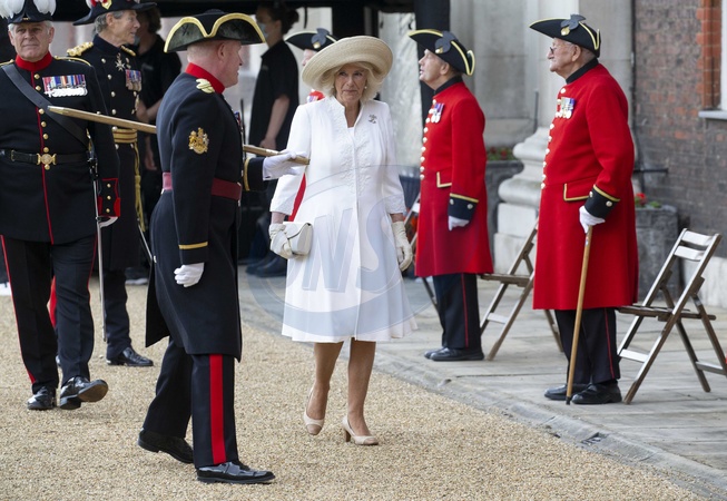 Ksiezna Camilla cala w bieli podczas wizyty w Royal Hospital