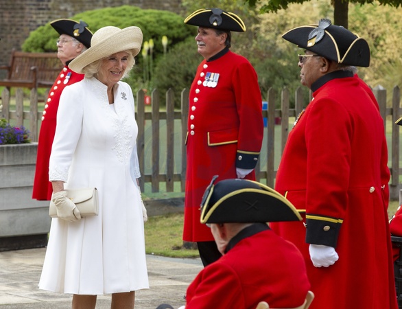 Ksiezna Camilla cala w bieli podczas wizyty w Royal Hospital
