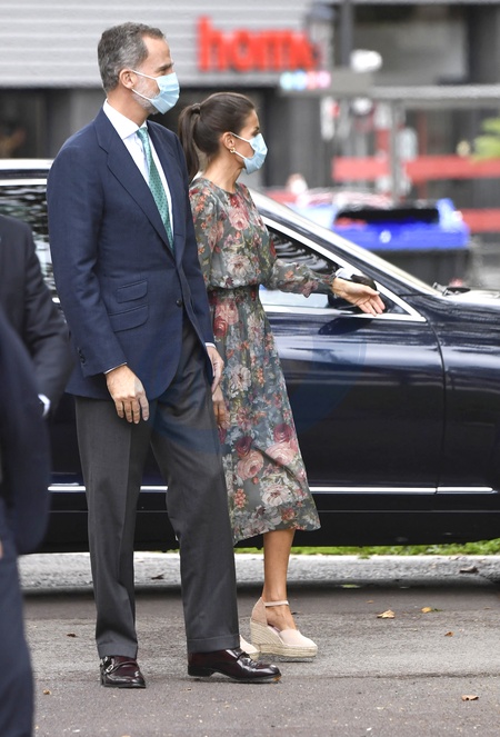 Krolowa Letizia w sukience w kwiaty i krol Filip w Guggenheim Museum