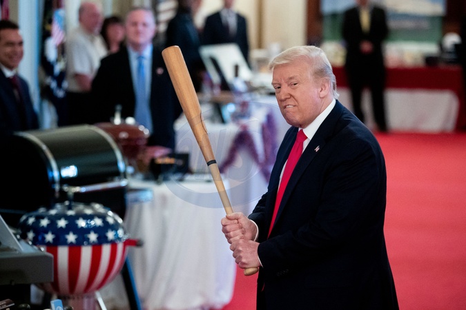 Donald Trump z kijem baseballowym podczas Spirit of America Showcase. Bialy Dom