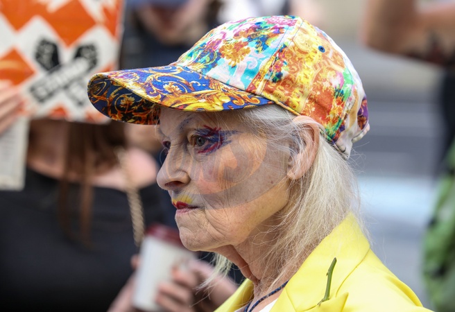 Vivienne Westwood w wielkiej klatce protestuje przeciwko ekstradycji Juliana Assanga