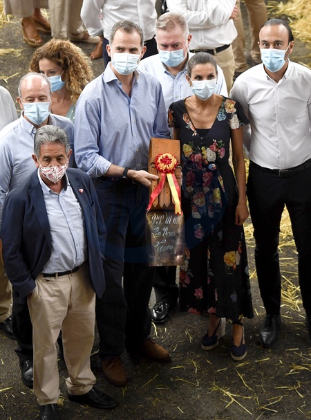 Krolowa Letizia w spodnium w kwiaty na targach bydla