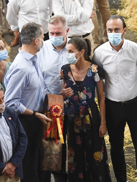 Krolowa Letizia w spodnium w kwiaty na targach bydla