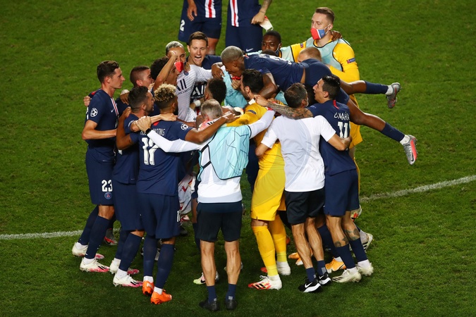 Pilkarze PSG ciesza sie ze zwyciestwa