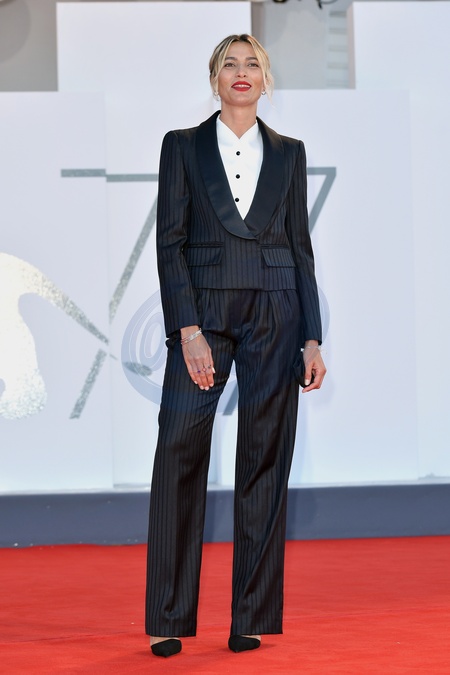 Wenecja - Gospodyni festiwalu Anna Foglietta pozuje w garniturze
