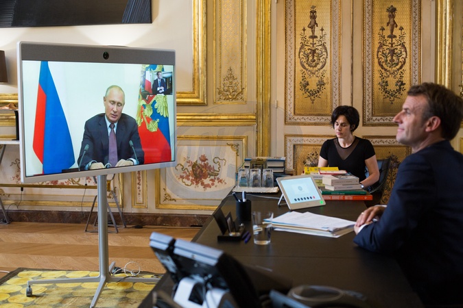 Widoekonferencja Emmanuela Macrona i Wladimira Putina