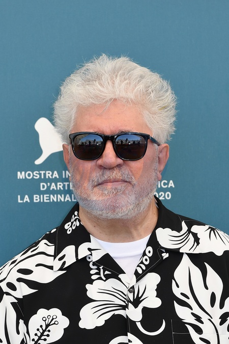 Wenecja - Tilda Swinton w neonowym garniturze i Pedro Almodovar na photocall