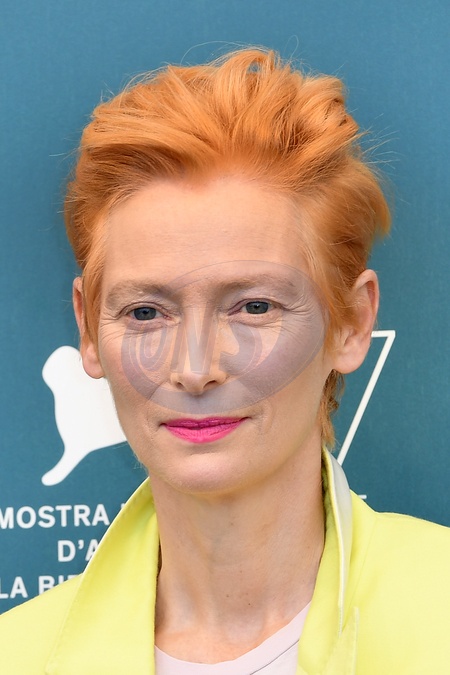 Wenecja - Tilda Swinton w neonowym garniturze i Pedro Almodovar na photocall