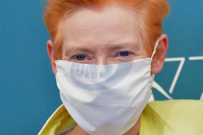 Wenecja - Tilda Swinton w neonowym garniturze i Pedro Almodovar na photocall
