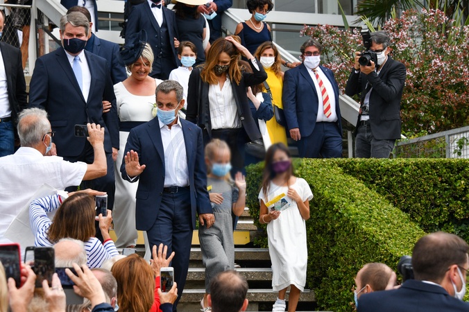 Sarkozy z corka i Carla Bruni na slubie przyjaciela