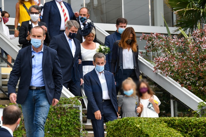 Sarkozy z corka i Carla Bruni na slubie przyjaciela