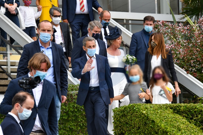 Sarkozy z corka i Carla Bruni na slubie przyjaciela
