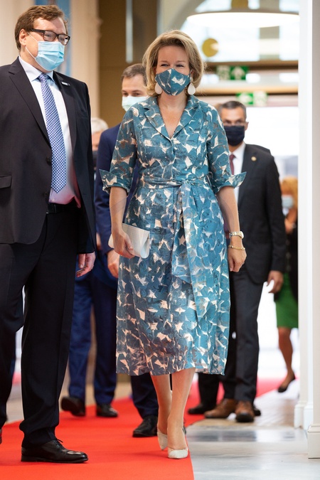 Krolowa Matylda w maseczce idealnie dobranej do sukienki