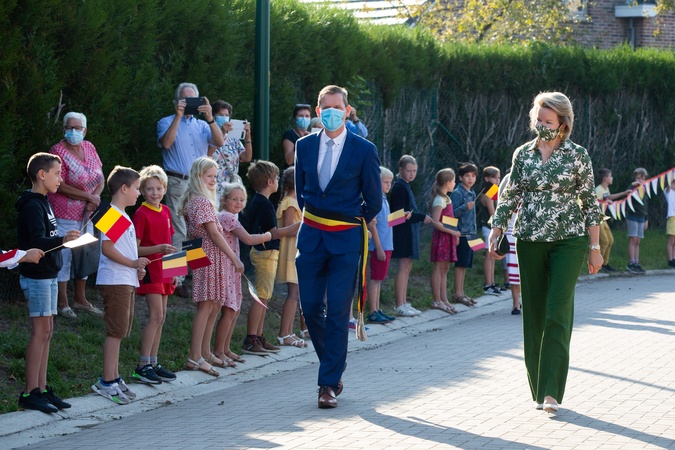 Krolowa Matylda w koszuli w palmy spotkala sie z dziecmi
