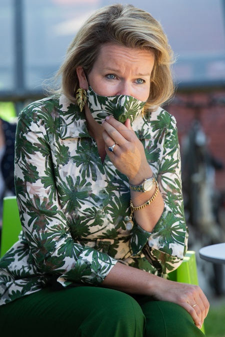 Krolowa Matylda w koszuli w palmy spotkala sie z dziecmi