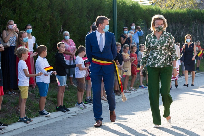 Krolowa Matylda w koszuli w palmy spotkala sie z dziecmi