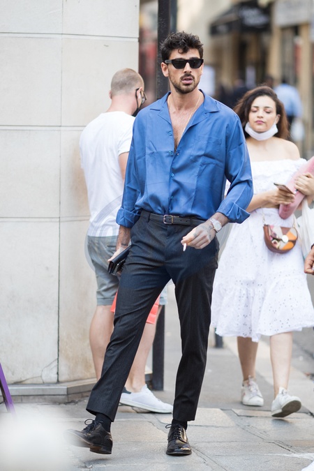 Michele Morrone, bohater 365 Dni - w rozpietej koszuli spaceruje w Paryzu