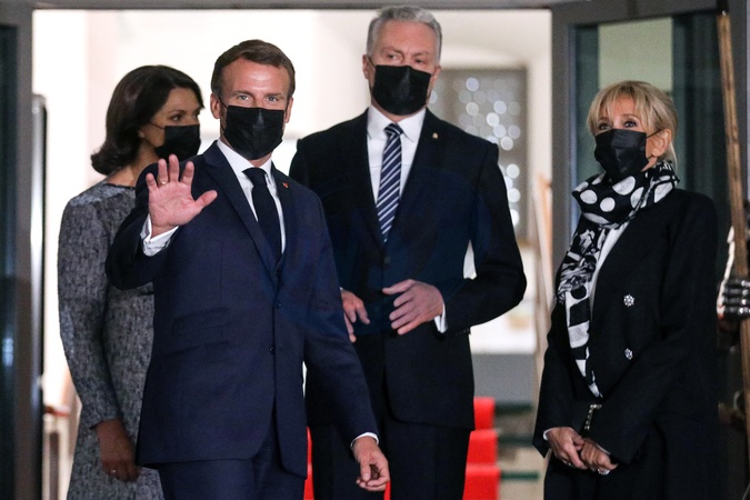 Macronowie na przyjeciu powitalnym u pary prezydenckiej Litwy