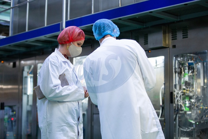 Krolowa Matylda w czepku i w fartuchu podczas wizyty w firmie mleczarskiej