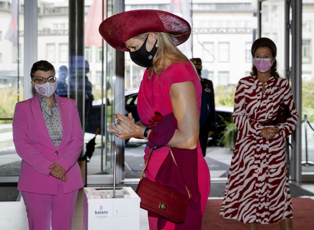 Krolowa Maxima w czerwieni podczas inauguracji miesiaca raka piersi na Swiatowym Forum w Hadze