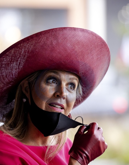 Krolowa Maxima w czerwieni podczas inauguracji miesiaca raka piersi na Swiatowym Forum w Hadze