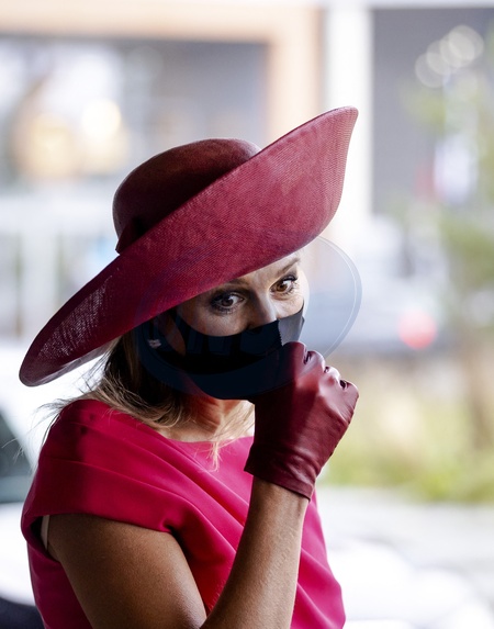 Krolowa Maxima w czerwieni podczas inauguracji miesiaca raka piersi na Swiatowym Forum w Hadze