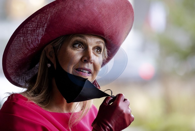 Krolowa Maxima w czerwieni podczas inauguracji miesiaca raka piersi na Swiatowym Forum w Hadze