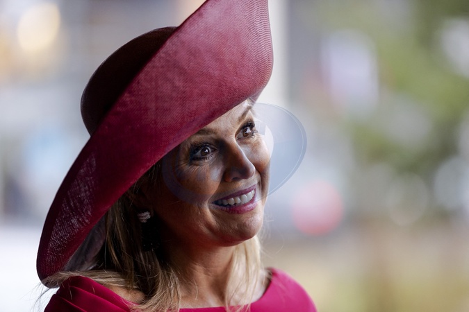 Krolowa Maxima w czerwieni podczas inauguracji miesiaca raka piersi na Swiatowym Forum w Hadze