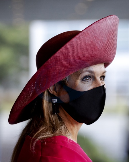 Krolowa Maxima w czerwieni podczas inauguracji miesiaca raka piersi na Swiatowym Forum w Hadze