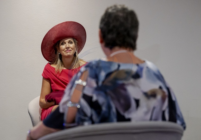 Krolowa Maxima w czerwieni podczas inauguracji miesiaca raka piersi na Swiatowym Forum w Hadze