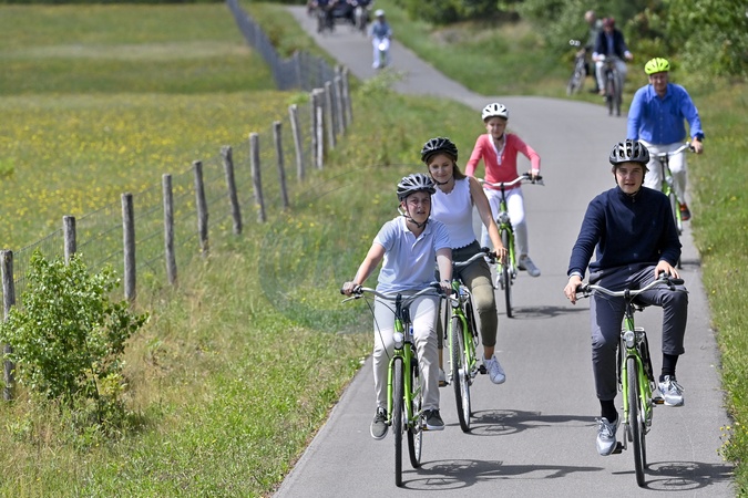 Belgijska rodzina krolewska na przejazdzce rowerowej w Bokrijk