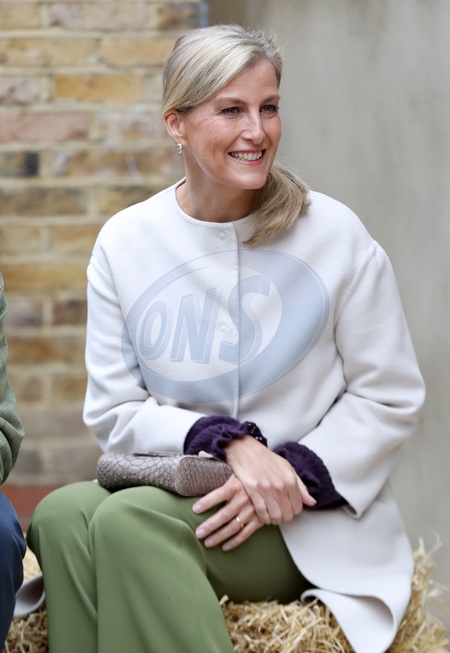 Ksiaze Edward i hrabina Sophie karmia lamy i kroliki na farmie
